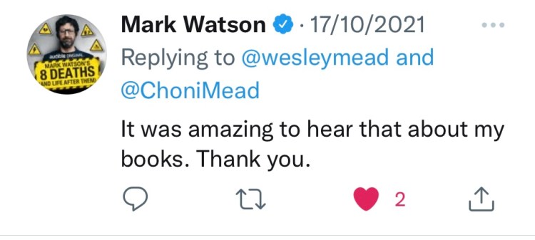 As most of the people waiting to meet Mark only knew him for his comedy, he was pleased to hear us compliment his books, especially when Wes explained their significance, as he had read them all when his dad was terminally ill.