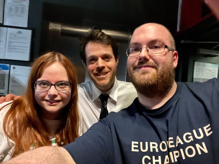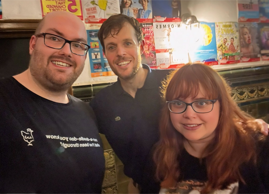 We’ve been huge fans of Mischief Theatre ever since first watching The Play That Goes Wrong in 2017, and have tried to catch everything they’ve done ever since. We’d only been expecting to be able to meet Henry Lewis and Jonathan Sayer, so it was an added bonus to have Henry Shields show up. Even though they weren’t doing official meet and greets, they were really happy to chat to fans outside and take photos.