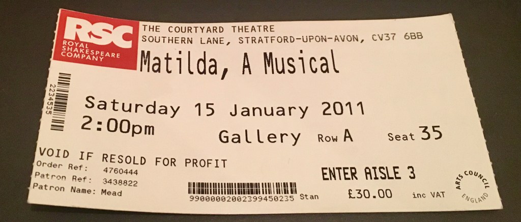 Comment: We were at the height of our Tim Minchin phase when we heard he was going to be writing music and lyrics for a new Matilda Musical. Our excitement at that news should be obvious by the fact our tickets were for the 12 week trial run in Stratford-Upon-Avon, 10 whole months before it hit the West End and became the huge success it is today. The only problem was we didn’t realise it wasn’t in London until we were about to board our pre-booked (and paid for) Berry’s bus and actually stopped to look at the tickets! It was too late to arrange another way of getting there, so I had to just drive the 2 hours 40 minutes myself and hope for the best.