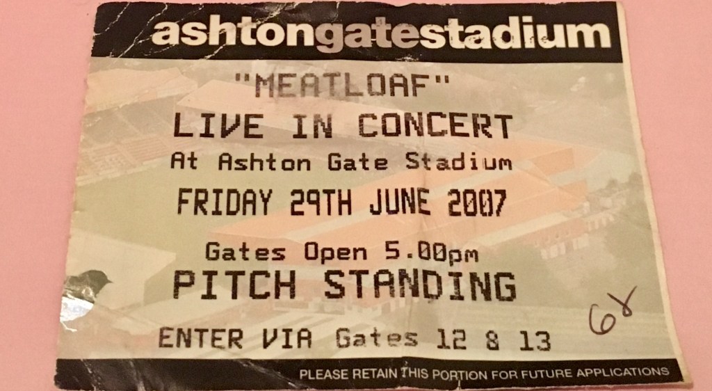 Comment: Less than a week after my first festival and I was hooked. Unfortunately while Glastonbury was free, Meat Loaf set me back £50. I had yet to learn how expensive gigs could be, and was horrified at the cost. Mum also wanted to go, but couldn’t justify the price. She did however get to listen from outside the gate, as being a selfish teenager I still expected her to drive us, and didn’t even consider buying her a ticket as a thank you.