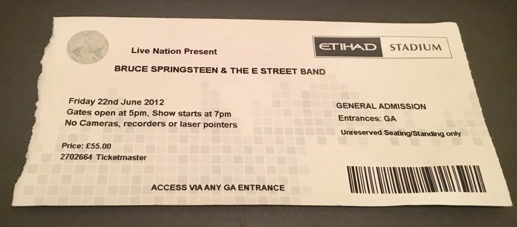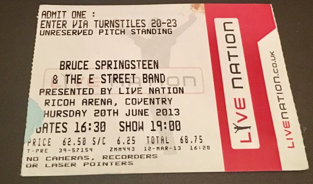 Comment: We went on the bus to Manchester which took about 6 hours, and joined the queue at the stadium about 3 hours before the start time. It was absolutely pouring with rain and I didn’t even have an umbrella, as we’d taken as little as possible to make getting through security easier. By the time we even got into the stadium I was soaked through and my feet were as waterlogged and wrinkly as if I’d stayed in the bath for way too long. We still had hours to wait for the show to begin (and of course Springsteen plays epic shows which last hours) so I ended up drenched with saturated shoes for about another 6 hours. Wes had a great time, and I spent most of it silently sobbing. Not sure what happened to the girl who used to spend 12 hours in the rain and mud in front of the Pyramid Stage at Glastonbury…