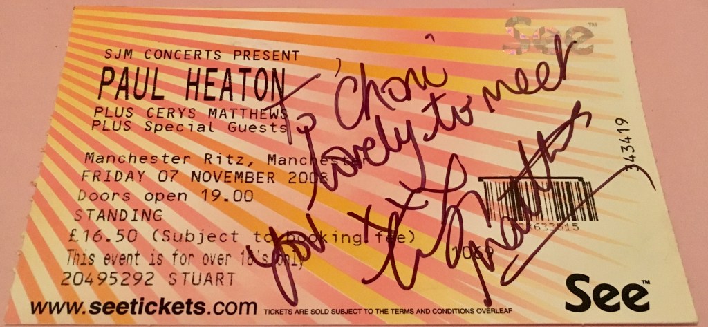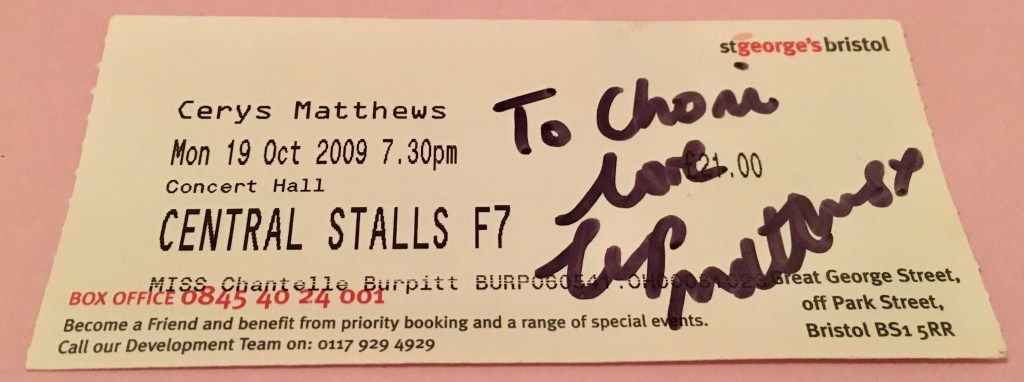 Comment: Nearly 2 years after passing my driving test I took my first trip across the bridge to Wales. It had been 6 months since my last Cerys gig, and this time I was picking up Ell on the way. We’d even paid extra to go to the after party. Cerys remembered my t-shirt from Manchester without being reminded, so I was on a high all the way home. Photos available on the “Celebrity Encounters” page.