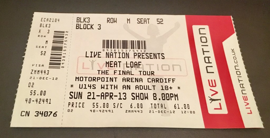 Upon leaving the show I decided to buy a t-shirt. Instead of spending £20 at the merchandise stand, mum advised she had seen someone selling them for £10 in the car park. They only had size large, but mum explained “that’s because Meat Loaf himself wears a large”, and I thought that made complete sense.
