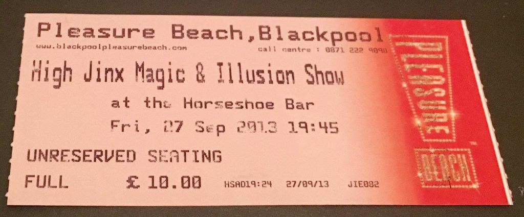 Comment: We discovered High Jinx while on holiday in Blackpool for the fourth time, and looking for something new to do. We knew of them already from Penn & Teller’s Fool Us, but we were still completely blown away by the illusions. It was such a small venue we could touch the stage from our seats, and we couldn’t believe the tricks being done literally right in front of us. Further details available on the “Celebrity Encounters” page.