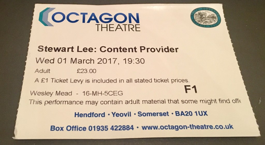 “After four years writing and performing his TV show ‘Stewart Lee’s Comedy Vehicle’, ‘Content Provider’ is Stewart’s first brand new full-length show since the award-winning ‘Carpet Remnant World’.”