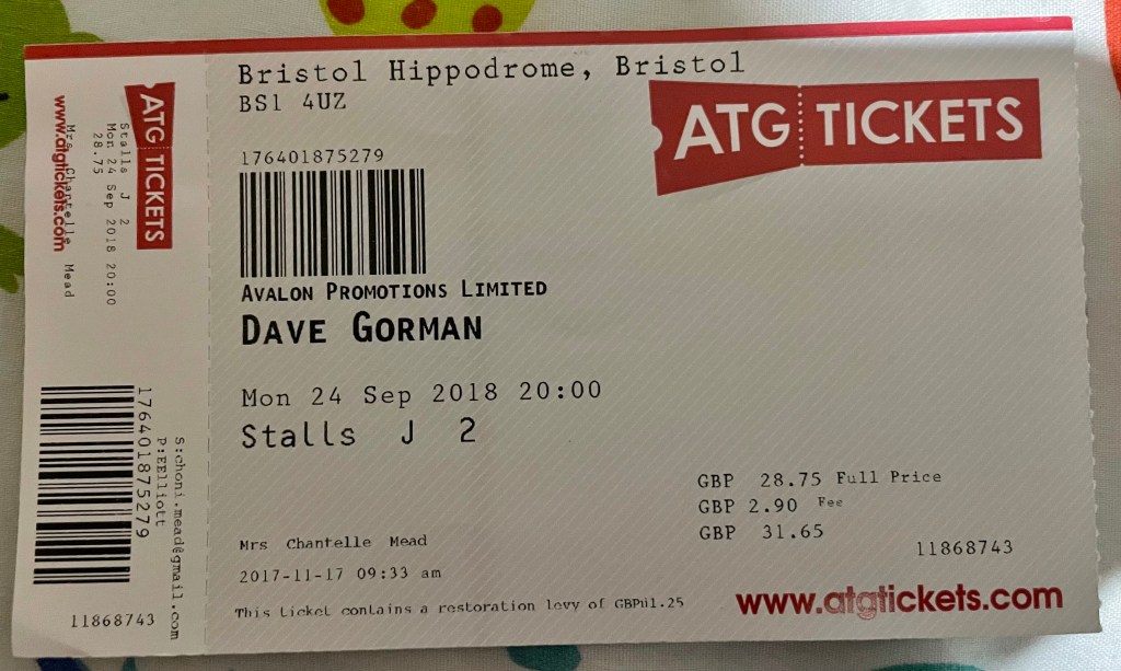 Comment: We bought these bargain priced tickets to a new material night in a tiny venue for a comedian we hadn’t heard of at the time – Jordan Brookes. He went on to win the Edinburgh Comedy Award in 2019.