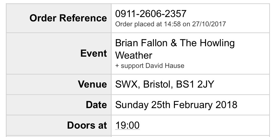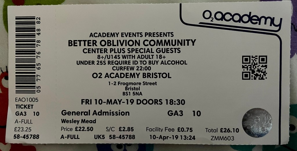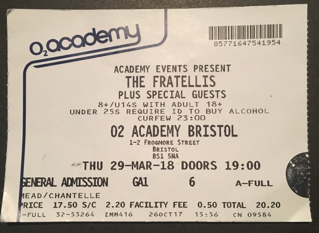 Comment: We originally thought we wouldn’t be able to go to this as we didn’t have the day off work the next day, so couldn’t stay over night, and the last train back wasn’t late enough. Then, after it had already sold out, we realised there was a bus going from Bath specifically for the gig. We booked ourselves on the bus before we’d even considered how we’d get hold of the sold out tickets…