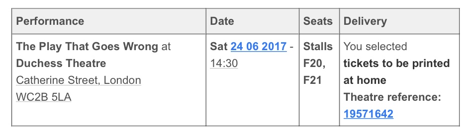 Comment: This play was even funnier than The Play That Goes Wrong, and immediately confirmed Mischief Theatre as a firm favourite.