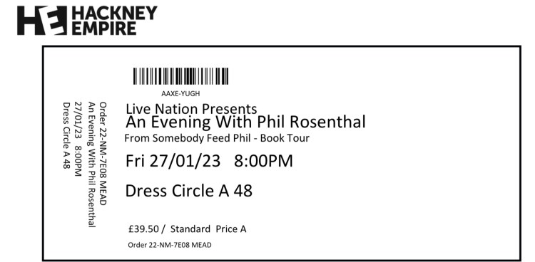 “Creator, writer and producer of Everybody Loves Raymond, and Netflix food and travel lover Phil Rosenthal is bringing his live tour to London. He’ll be talking about his travels, the food along the way, his new instant New York Times Bestseller – Somebody Feed Phil the Book, with a special guest at each show.“