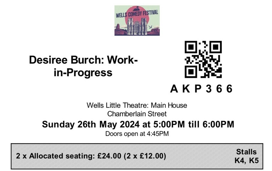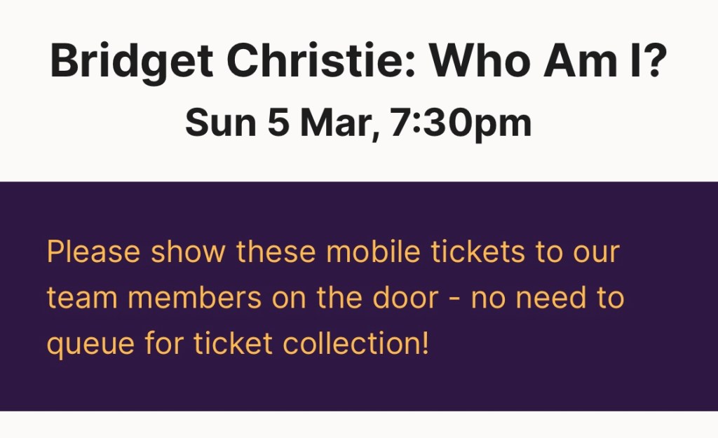 Comment: This was the most “work-in-progress” show we’ve ever seen! Most of the time it really means “an almost finished show which just needs a few tweaks”, but Lou openly said she hadn’t written anything! It was an hour of her ad-libbing and answering audience questions, which was still good fun.