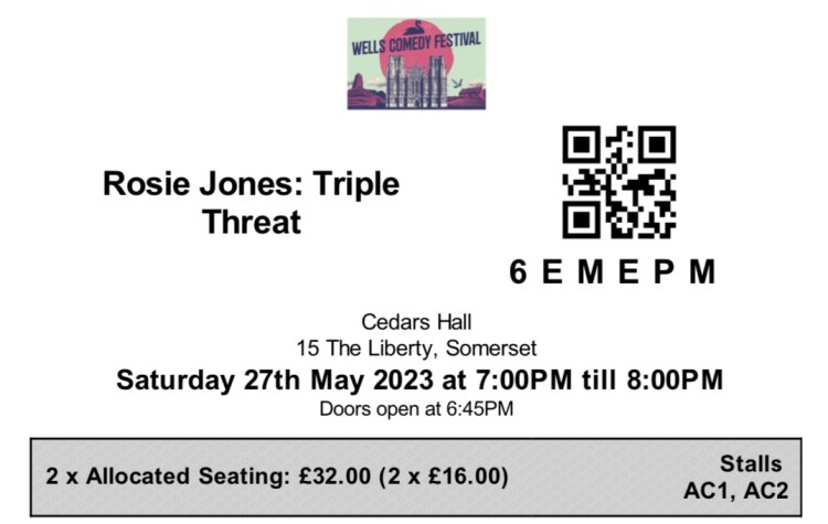Comment: I was so desperate to see Rosie that we actually booked tickets for Bath too, just in case we didn’t get to see her in Wells for any reason (illness etc.) We didn’t go twice though… although I did consider it!