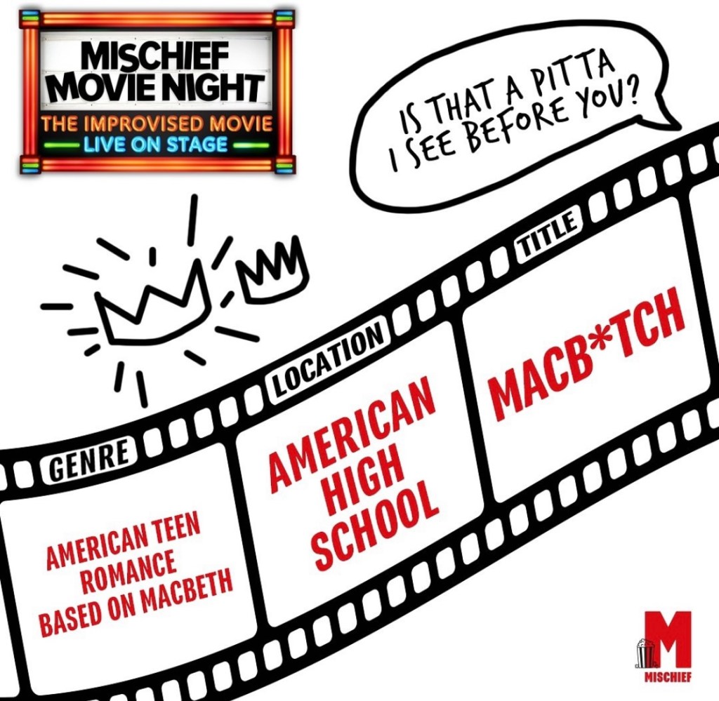 “Mischief, ‘the funniest theatre troupe in Britain’ (The Telegraph) returns to the stage this summer, stepping back to their comedy roots for 5 weeks only with MISCHIEF MOVIE NIGHT, the improvised movie live on stage! Every show is different with you suggesting a genre, location and title, and Mischief hilariously brings the show to life, complete with rewinds, fast forwards, directors cuts and a thrilling live score to laugh along to. Starring them, directed by you, MISCHIEF MOVIE NIGHT, is a guaranteed comedy blockbuster!“