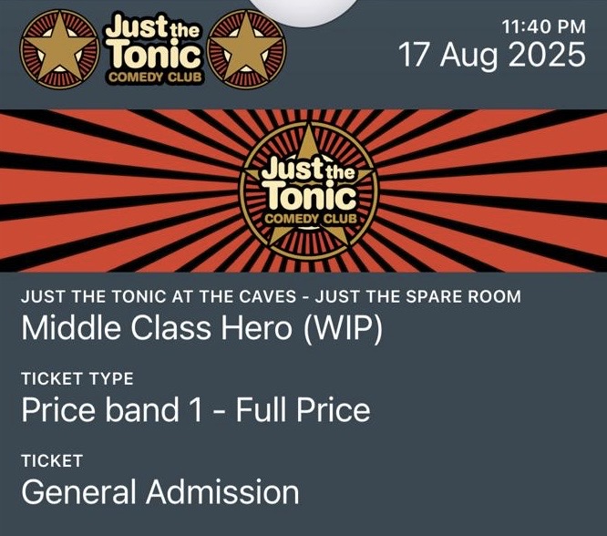 Comment: Great to see Tim finally take the opener spot by himself. Amazing show, and lovely to meet them both afterwards.