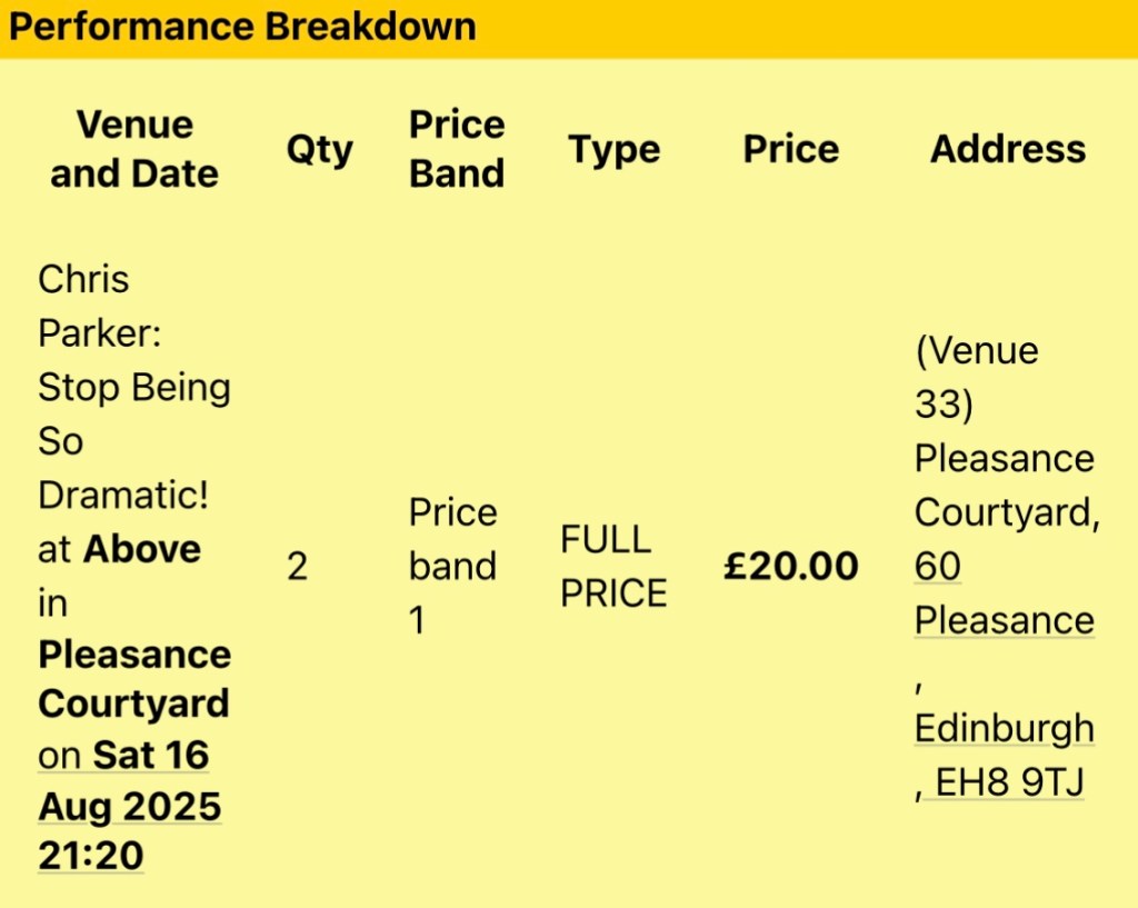 16th-20th August 2025 – Edinburgh Fringe