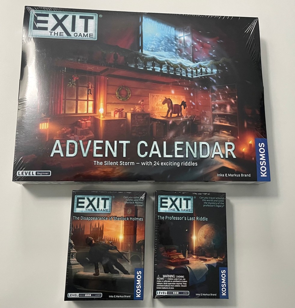 | 24/12/2021 | Exit Advent Calendar: The Mystery of the Ice Cave ![]() This advent calendar is an exit game and an adventure story in one. Behind each door you will find a tiny 3D room containing an exciting puzzle, the solution of which, day by day, brings you closer to rescue. Only by solving all 24 riddles will you reveal the secret of the mysterious ice cave and find the exit. (2/5 difficulty rating) |
