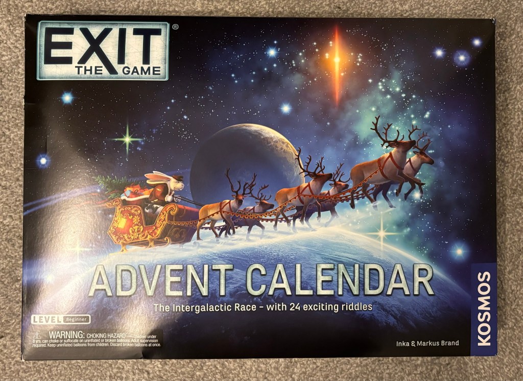 | 24/12/2025 | Exit Advent Calendar: The Intergalactic Race ![]() For months, the main topic of conversation in the cosmos has been the huge 24-day Le Mond race – and you get to be part of it! How lucky that quirky guy at the space bar hired you to join his team. In addition to fame and honour, the winner of this amazing race will, from now on, host the extremely lucrative Christmas party! No wonder there are more teams competing than ever before. Everyone wants to win … everyone wants Christmas! (1/5 difficulty rating) |